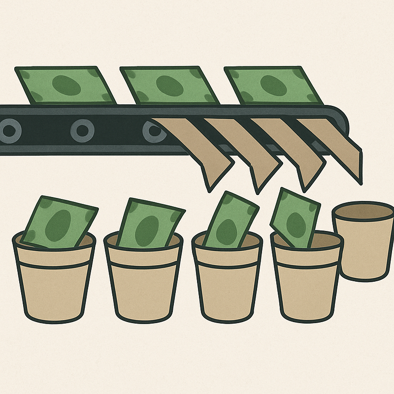 You are trying to break one stack of cash into clean buckets: rent, food, gas, fun, savings.