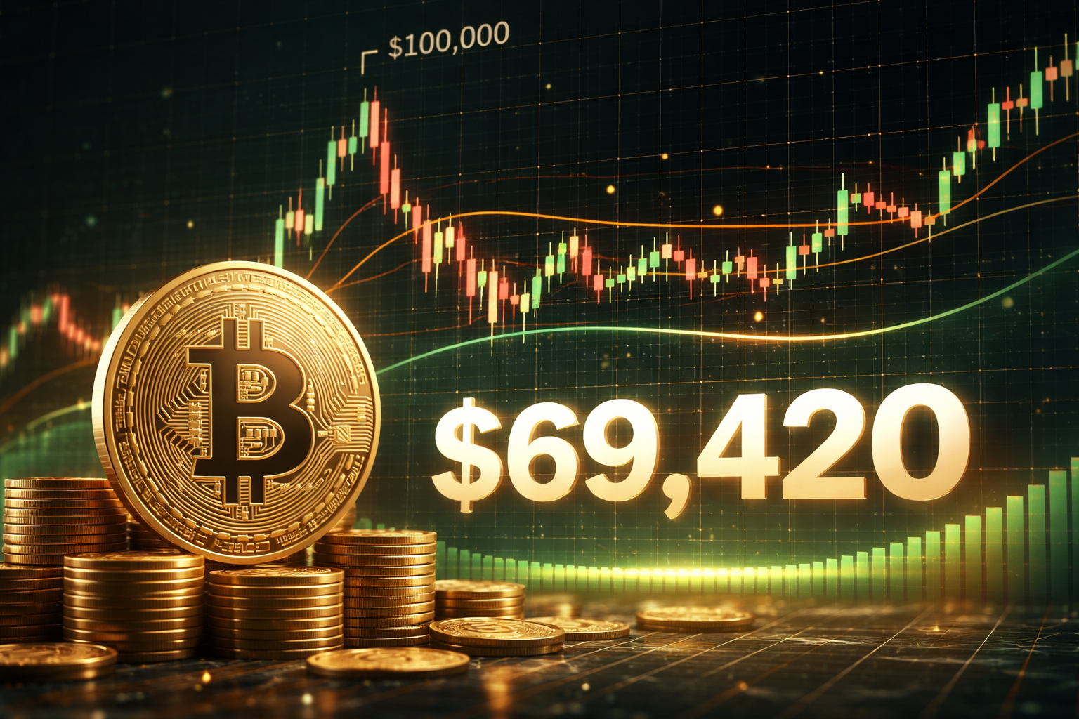 Right now, that range appears close to $70,000. The number $69,420 sits near the middle of recent trading, above panic lows, below speculative highs, and close to a simple benchmark.